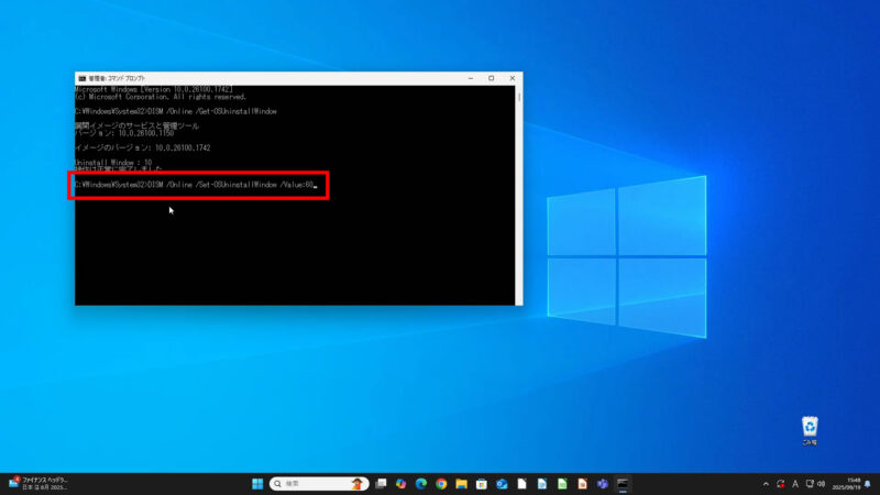 確認のため、次の「DISM /Online /Get-OSUninstallWindow」を入力し、「Enter」を押すと、