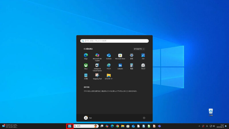 まず初めに、[Windows スタート]ボタンをクリックし、