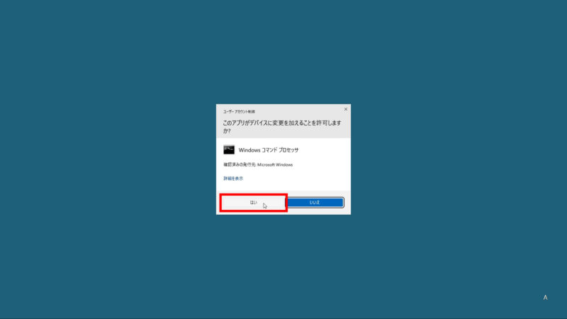 「このアプリがデバイスに変更を加えることを許可しますか?」と表示されるので、「はい」をクリック、